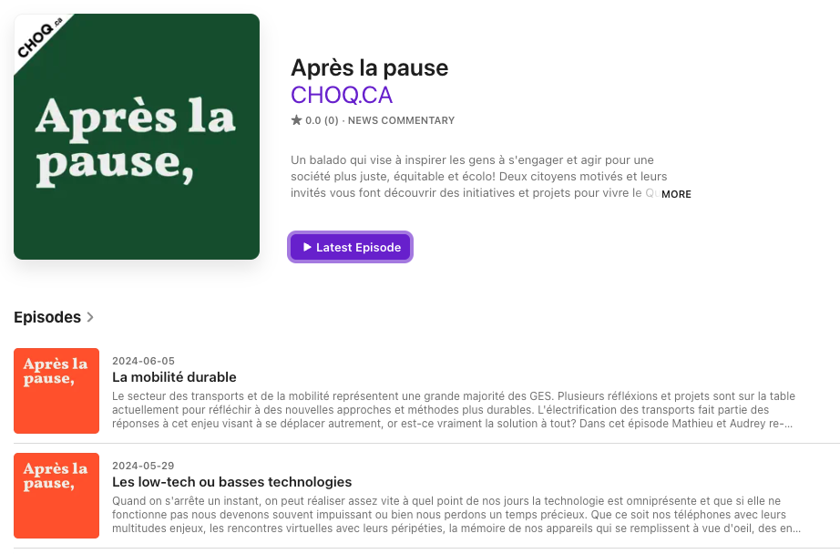 Brand design for the podcast Après la pause. Brand design including a logo, illustrations, and marketing content pieces for social media (1:1, thumbnails, banners, and collaterals). Podcast available on choq.ca